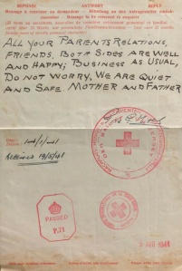 A wartime Red Cross letter from a Noel family member evacuee to a de Gruchy relative in Jersey