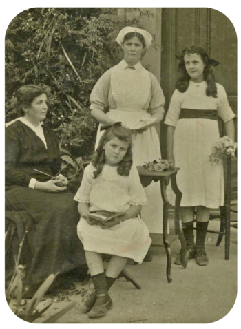 Jeanne de Jersey, Emelie Durang, nee de Jersey, Yvonne and Helene Durang, photographed in Bordeaux in 1916