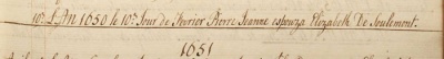The 1650 St Brelade record of the marriage of Elizabeth de Soulemont and Pierre Jeanne