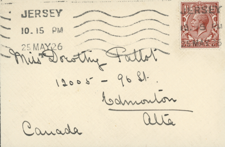 - ↑ OV. Known as Bert, he worked for Petter’s of Yeovil, Somerset, before moving to the firm’s branch in Toronto. After very unexpectedly meeting Charley in the street in Strathcona, Canada – Bert had not even known that Charley was in Canada – the brothers decided to homestead near Ashmont. They built a cabin together in 1906. In Autumn 1907 Bert’s fiancée Gertie arrived from England and the two of them were married. Bert and Gertie moved to Edmonton, where Bert continued his engineering work alongside agricultural work. He returned to Petters in Yeovil as the Foreman of the engine testing department, to help with the war effort during the Great War, and brought his family over to England with him. A family story relates that the family was at a Labour Party rally in 1915 at which Dorrie, then aged two, was hoisted into the air by Clement Attlee, who shouted to the crowd, “This is what we’re fighting for!” Perhaps during this time, Bert and Gertie’s family came to Jersey to meet their aunts and grandmother. After the war, Bert and his family returned to Canada. He got a job working in the boiler room of the MacDonald Hotel in Edmonton, where he became a founding member of the Hotel and Barworkers’ Union. During the Second World War, he went to sea, working on Merchant Navy freighters in the Pacific. He continued to go to Ashmont twice a year for planting and harvesting until his death in 1964. He and Gertie had two daughters, Elsie and Dorrie; the family’s archive contains frequent letters to Dorrie from their aunts in Jersey