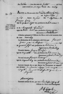 - 5 Francois Gorin (1786-1856) m (1809, St Brandan) Marguerite Gouedart (1793- ) daughter of Ollivier (1744- ) and Michelle, nee Mesleard (1756- )