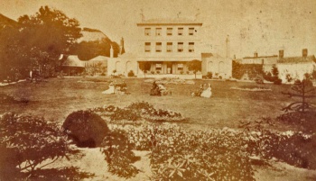 The Limes, built in the early 19th century for Aaron de Ste Croix (1756-1835), merchant and shipowner. Fort Regent can be seen in the background, on the left. In the 20th century, it was used as a nursing home, before being demolished. The garden was used for housing