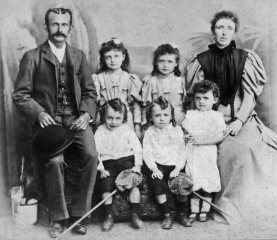 Albert Joseph Allix and his first wife Margaret, nee Bellingham, photographed with their children Violet, Ethel, Albert, Clarence and Elsie, in about 1896, three years before Margaret died