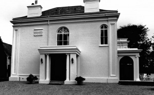 - "The main house has been much altered over the years, and all but the north facade has been covered in stucco; it looks as if it was intended to cover it all, as there are handsome moulded pilasters at the corners, and the north face has brick shaping also intended to carry stucco, pilasters and a moulded cornice.