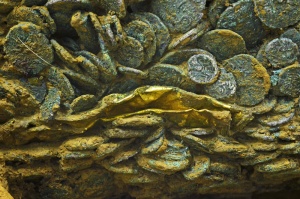 Before a coin was removed from the block it was laser scanned so its exact position was recorded, and then once it was removed it was laser scanned on its own. One small subblock of coins was not excavated. Instead, it was snugly plastic wrapped and removed whole so that future conservators armed with new technologies have a clean, original section to study.