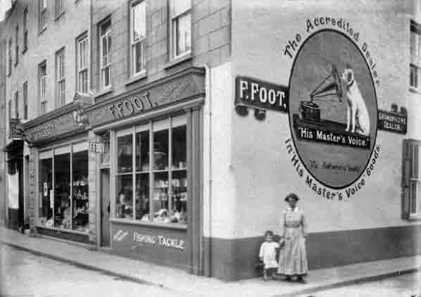 The Dumaresq Street frontage of Foot's shop showing the much faded HMV logo