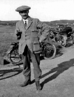 A self portrait of Edwin Dale with his motor cycle