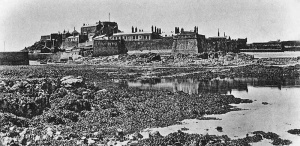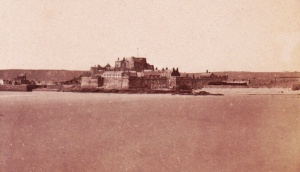 An 1875 print of a view of the Castle from St Helier Harbour ...