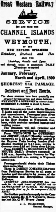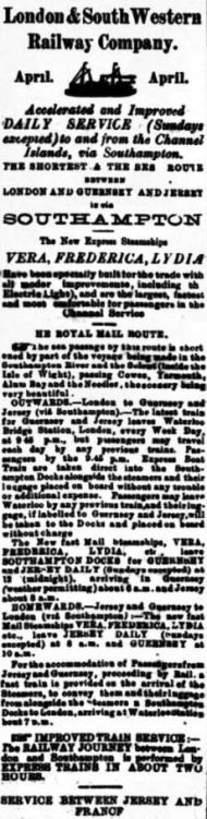 To reach St Malo and Granville hotels (see left) or the UK mainland, it was necessary to take a boat, and competition between the two main railway companies, London and South Western and Great Western, was fierce. There were daily adverts for the scheduled services and frequent excursions from Easter onwards to French ports ------------------