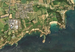 Ficquet Bay, named after the family, or vice-versa, is a rocky cove in the centre of this picture. To the right is the sandy beach of Beauport, and on the left La Moye Prison