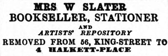 W16AdMrsSlaterHalkettPlace1874.jpg (657 × 221 pixels, file size: 32 KB, MIME type: image/jpeg)