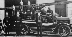 St Helier firemen outside the Town Hall - picture by Percival Dunham