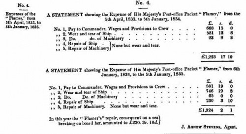 Built in 1827 by Fletcher and Farnall of Limehouse at a cost of £7,190, of 165 tons, with 60 hp engines and 12 crew, Flamer was greatly superior to the other vessels.