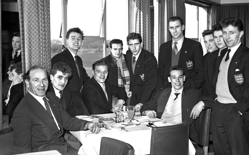 Matt Busby and his Manchester United 'Busby Babes' during a stopover at Jersey Airport in 1957, the year before so many were killed in the Munich air disaster - Picture Evening Post