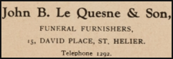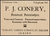 This page contains an index to the most valuable set of records to be added to Jerripedia since those church records were released by Jersey Archive to Ancestry in 1916. It provides an A-Z index to the records of the seven main funeral directors active from 1820 to the 1970s. This is an invaluable resource, because it brings together all 66,000-plus undertakers' records for funerals at churches of all denominations, plus the early years of Jersey Crematorium. The details included by the seven businesses vary considerably, but most identify the deceased, their next of kin, cemetery of burial and other personal information, as well as an itemised list of the costs of the funeral.