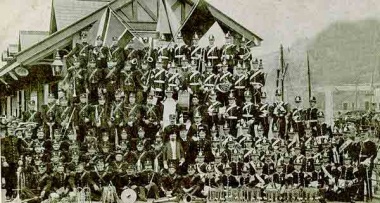 A public performance by a garrison band in 1898