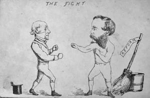 These cartoons were published in a Jersey newspaper, not yet identified, to coincide with one of more of the bitterly contested St Helier Deputies' elections in the 1860s. They appear to be targeted at George Vickery, but, given his long period of service and several re-elections, they appear not to have had the desired effect