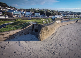 This page contains pictures of defences installed by the Germans in St Aubin's Bay during the Occupation as part of Hitler's Atlantic Wall, which was designed to prevent any Allied invasion of occupied territory. More pictures of defences at other locations, and links to pages for other major installations, will be found in Photographs of German defences and other installations. More pictures of St Aubin's Bay installations will be found in The 'green books'