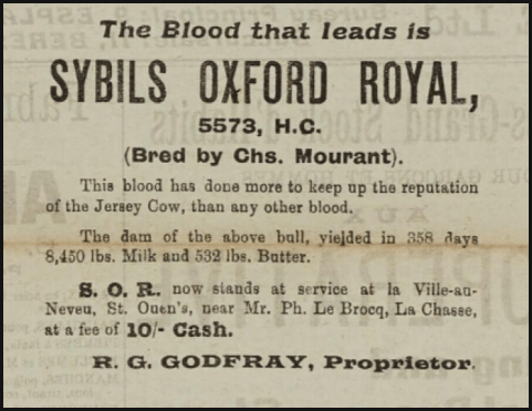 R G Godfray, of St Ouen, advertised his bull in the Chronique de Jersey in 1925
