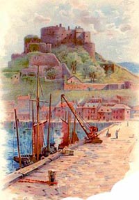 Long before Mont Orgueil was built, when de Carterets, and other landowners, crossed over to visit their insular estates, the hook caused by the Castle Hill made this the obvious landing-place for boats coming from France. In the Extenie of 1274 it is called Portus Gorryk, the Port of Gorey; but not till 1826 were ships given a better protection than a roughly built jetty.
