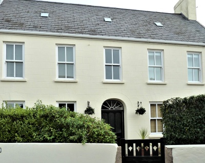Mid-late 19th century house retaining its proportions and historic character of the principal south elevation, and contributing to the corner setting. Gable end on Grande Route de St Martin, entrance set back from Rue des Pigneaux.