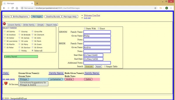 The records are all held in a central database, which is constantly being updated with more records added, any duplicates deleted and corrections made as errors made by the original transcribers are spotted. A major review of the database by a small Jerripedia team during 2018 and 2019 resulted in a significant number of changes, which suggested that it was time to update the Jerripedia indexes, which were last synchronised with the database in 2017.