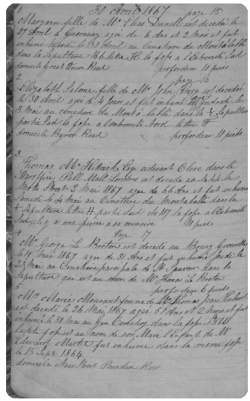 The records of Jersey's seven major undertakers from 1820 to the late 1970s are held by Jersey Archive and have been digitised and indexed by archive staff and volunteers. We previously provided family page listings of the records of Croad's, a single business, but have now combined all the records into a single new index and are progressively updating the lists in our family pages. The full records are available to subscribers to the Archive's online service. The entries within the volumes give vital family history information such as the name and age of the person buried, their immediate relations, the place and date of death, as well as place of burial - cemetery, location of grave and even the coffin's depth. Some records also give details of the deceased's occupation or public positions held. The books can be viewed on line or downloaded. Each set for each undertaker has an index which subscribers can view online or download. It can be a lengthy process searching for records because there are separate indexes for each funeral director and most do not give a date of burial. This means that several volumes may have to be accessed when searching for details of an ancestor's burial. Although the Archive website has a search facility which allows a search for individual names, the results can include all manner of other records in their catalogue and, unless the exact spelling of a name is known, the required record will not be found. Jerripedia has not only created a full A-Z index for all 66,000-plus records, with the year of burial included for the benefit of our users who have an Archive subscription, but we are adding indexes of records, such as this one, for individual families included in our 1,200-plus family pages, which include all the island's most important families. Some records use page numbers and sequential record numbering. Most of the Archive indexes do not include dates. All our indexes and lists give dates, and having identified the undertaker and date of funeral from this listing you can then easily find the volume containing the record. The Archive indexes contain some very unusual spellings for common Jersey surnames. We are cross-checking these with the images of the undertaker's books and finding that most are errors of transcription, which can be corrected for our index, although the process of checking against the books is very time-consuming. Some of the handwriting in the books is very difficult to read, and there may also be errors in the entries. We are correcting names when we are entirely satisfied that a common surname has been wrongly entered or transcribed. Variations of common names which may be correct are included at the end of family name indexes, and have been left in the full A-Z indexes. Our advice is the same as it is with any other set of records included in Jerripedia. If you don't find an ancestor where you expect to, look for variations in spelling and, perhaps for names with or without prefixes, such as Le, La, L', de and du. Variations may appear next to records for names spelt in the standard form; they may also be some way out of sequence. Please note that the work of updating all our family page burial lists to include all funeral directors is not yet complete, and some pages still link to an incomplete listing for a single business. Note also that there were other undertakers in business over the years whose records are not included in this collection. For families with a significant number of records we have created a separate page, but when there are only a few records the link may be to an A-Z index page, and you will need to scroll through the alphabetical listing to find the family you are interested in.