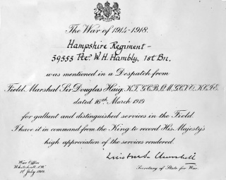 A mention in despatches for Private William Henry Hambly