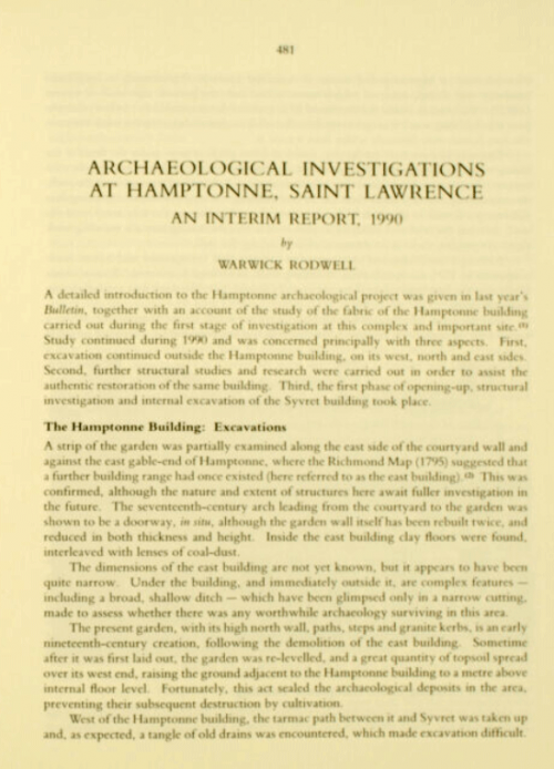 This article by Warwick Rodwell appeared in the 1991 Annual Bulletin of La Société Jersiaise. We are reproducing it as page images until resources permit it's transfer to the normal Jerripedia format, with links to relevant pages and external sources
