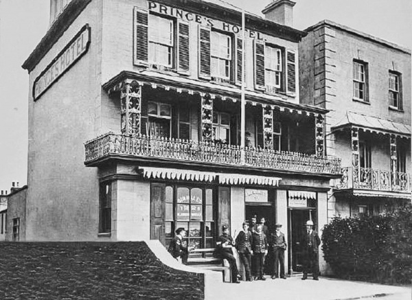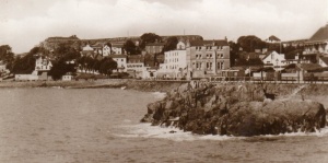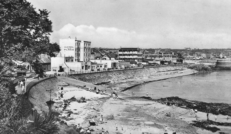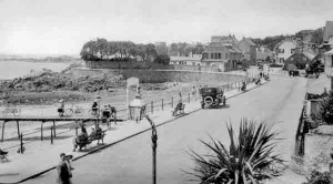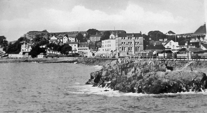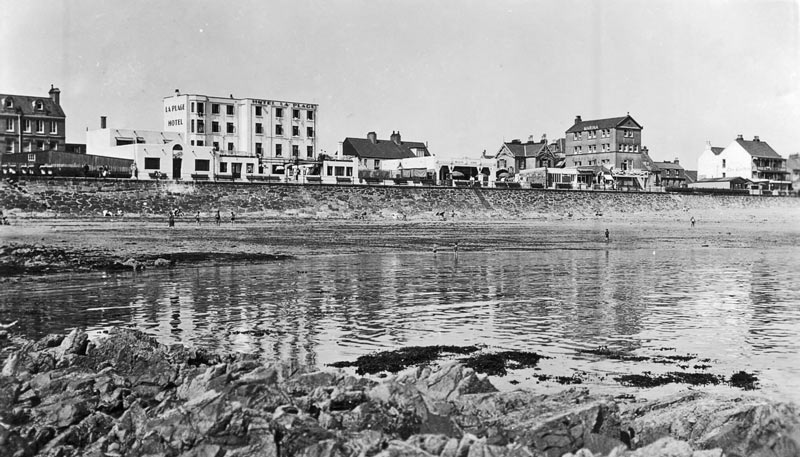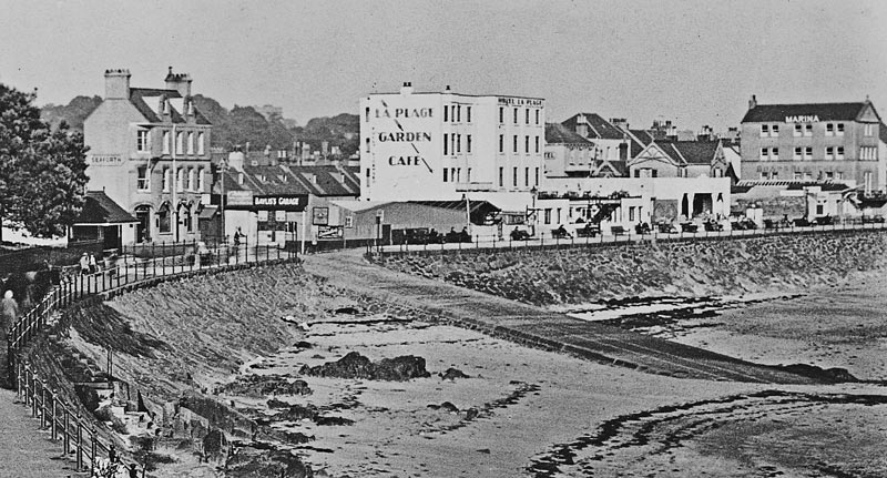 The seafront in the late 20th century, with the Fort d'Auvergne Hotel in the foreground ...