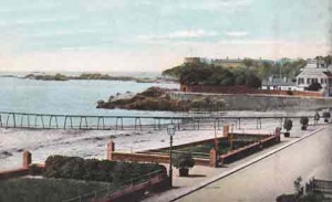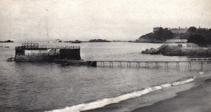 A view across the bay in the 1890s showing the diving stage used by women before the pool opened ...