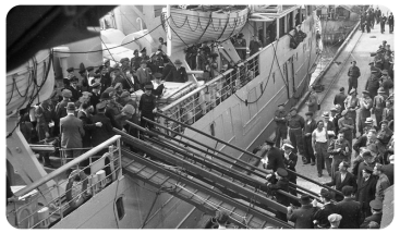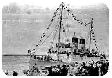 - As she came closer the sense of excitement grew as, standing on the promenade, the closest we ordinary mortals were allowed to get to the Harbour, we recognised the familiar shape with the freshly painted yellow funnels with their black tops proving without all doubt that here at long last was our mailboat. As she rounded the breakwater she was seen to be dressed all over in honour of the occasion, for it was a historic occasion with the Southern house flag at the jackstaff and the Red Ensign at stern. As she got closer we could recognise people on board, fewer than expected. Soldiers on leave, civilians returning home, some from England, some from Germany and they cheered and cheered again as the vessel passed through the pierheads answered no less heartily by the group of States officials, military officers and others on the pierhead. Before the gangways were hoisted aboard the Bailiff welcomed the returning exiles, speaking with evident emotion through loud speaker equipment. ‘Welcome home. After five years of separation it is a wonderful thing to welcome you on this historic occasion. God bless you all.’