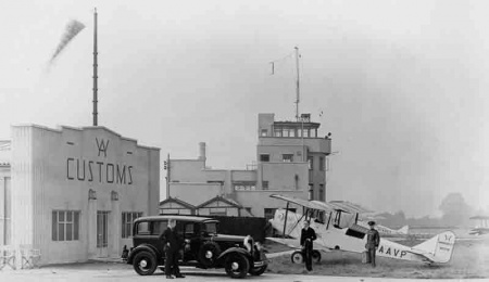 Heston Aerodrome west of London was Jersey’s first main direct link with the capital. Jersey Airways operated flights there from West Park beach between 1934 and 1936 and then from the new Jersey Airport in 1937-40. Heston did not reopen for commercial flights after the war and Jersey Airways switched to Croydon