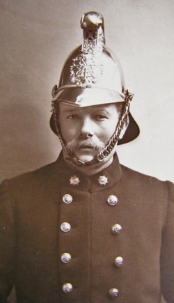 James Bower Hibbs, born in Guernsey in 1859, was living in Jersey by the age of 12. He is pictured in 1909 in his uniform as a driver in Jersey's Fire Brigade. He married Rebecca Amelia Hepburn in St Helier in 1879 and they had seven children