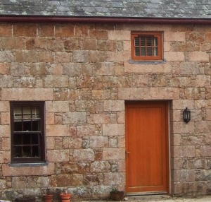 Victorian farm range - now residential - retaining exterior historic character and good quality stonework. Two-storey, L-plan farm range of stables/outbuildings (now called Le Grenier and L'Autre Grenier). North range (running east-west): eight-bay. East range (running north-south): six-bay. Squared granite construction with dressed stone quoins and openings. End bay with tall elliptical arched carriage entrance with brick dressings. Other former outbuildings subject to significant alterations.