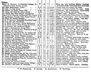 Pages from a holiday leaflet with a listing of lodgings in 1906 and hotel advertisements. Click on any thumbnail to see full-size image