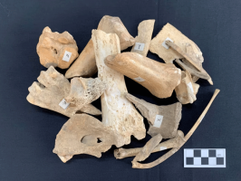 - Animal bone: Cattle, sheep, pig and bird bones were found scattered on the floor of the chamber. They may have been food offerings. The burial of cattle suggests people had a close relationship with their herds.