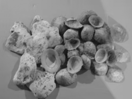 - Shell: Limpet shells were found on top of some of the capstones, placed there during the construction of the mound. The practice of putting limpet shells with human bodies seems to have been a uniquely Channel Islands custom.