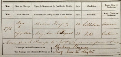 Abraham Houguez married Mary Ann Le Huquet in St Saviour in 1847
