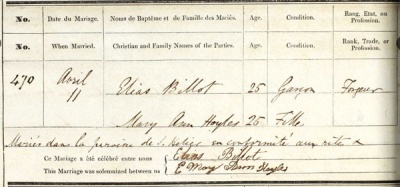 Mary Ann Hoyles married Elias Billot in St Helier in 1847