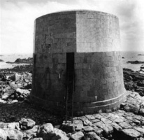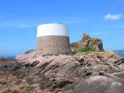 The first men were stationed there in 1811. Situated about a mile and a half out to sea off the Platte Rocque this tower cost £6,263 to build, was 8.53 metres in height, and was armed with a 24pdr long gun on a traversing platform. The magazine could contain up to 40 barrels of gunpowder and had accommodation for an officer and twelve men. A report of 1840 stated that it was armed with 1 x 24pdr on a wooden traversing carriage, had a magazine for forty barrels of powder and accommodation for one officer and twelve men. It also had a water tank to take 2,268 gallons. The States bought the tower on 26 July 1922 for £80. It was occupied by German troops during WWII as a look-out.