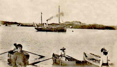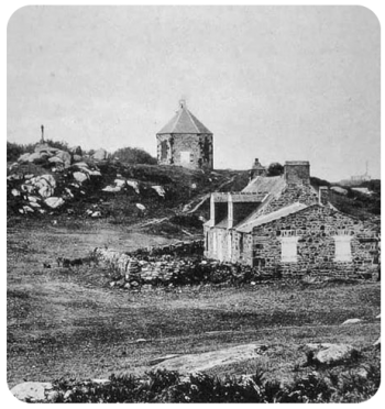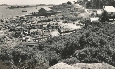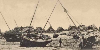 This picture was supplied to Jerripedia with the caption 'Jersey fishermen's cottages, Chausey' The buildings are not those which are familiar in pictures of the Minquiers reef, which lies about half way between Jersey and Chausey, so it must be assumed that this is an early photograph or drawing (the quality is not good enough to be certain) of les iles Chausey, and that these are French fishermen's cottages. There is some evidence that Chausey was, in Roman times, considered as part of the Channel Islands, but although they are inhabited today and attract thousands of day-trippers through the summer, for a long period they afforded only a temporary home for fishermen operating out of Granville and nearby ports on the French coast. There is no evidence of any strong link between the Channel Islands and Chausey in Norman times which might have caused Chausey to have become English possessions after the loss of mainland Normandy by King John, and Chausey has remained resolutely French over the centuries