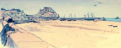 It is said that a picture is worth a thousand words, and never could it be more true than in 1888, when these impressions of a holiday island were published in a French book entitled Plages de Bretagne et Jersey (Beaches of Brittany and Jersey). No words other than the original captions are needed to sum up the image which was created of an island which was beginning to rely heavily on tourism to expand its economy as the Victorian era was at its peak. (Note: These images were previously dated to 1912 and Edwardian Jersey, drawn from a later edition of the book, now known to have first been published in 1888.)