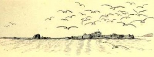 On the left is the title page of the book, which features over a hundred delightful drawings of beaches and other scenes, all along the north Brittany coastline from Mont Michel to Brest, and including St Malo, Paramé, Cancale, Dinard, Saint Lunaire, Portrieux Saint Quay (as it was known then, the two parts of the name now having reversed), Roscoff and Brest.