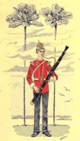 Left: A St Helier, l'armée Anglaise assiégée par le bataillon Jersiais. "Se rendra! Rendra pas!! Rendra!" (At St Helier the English army besieged by the Jersey batallion. "Give up! Don't give up! Give up!")