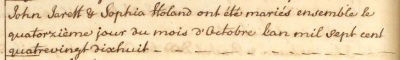John Jarett married Sophia Holand in St Saviour in 1798