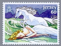 - ↑ Once there was a young woman called Anne-Marie, who liked to skim stones on the beach at Bonne Nuit. A sea sprite had noticed her, and as he watched her he decided that he wanted Anne-Marie for his wife. But Anne-Marie had a sweetheart - William. So the sea sprite decided that he would get rid of William and have Anne-Marie for himself. The next day William went to muck out the stable, and inside he found a splendid white stallion. Shocked, but pleased at such a gift, he decided he would ride it to show Anne-Marie. That night however, William dreamt that the stallion was dangerous, so he picked some mistletoe and took it with him when he went riding. As he rode across the beach towards Anne-Marie, the stallion turned and began to charge towards the sea - it was the sea sprite in disguise, trying to drown him. William beat the stallion about the head with the mistletoe, and all of a sudden the horse stiffened and turned into rock. You can still see the rock in Bonne Nuit Bay