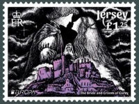 The gang ran towards Jeanne in a fury, and she fled the cave and ran along the beach. She climbed up L'Islet rock, and as the waves swept over her, she was dragged out to sea and drowned. A week later, Jeanne's body was washed ashore, and as some fishermen carried her body along the beach, they saw ravens circling around a cave. Curious, they went in and found the bodies of Raulin and the gang's leader. They took the body of Raulin and buried him and Jeanne together - but they left the gang leader's body for the ravens. Today it is said that Jeanne's screams can still be heard - Les Cris de Tombelenes. - ↑ Once upon a time a couple were walking home through Waterworks Valley. As it reached midnight, they heard a peal of bells. They began to walk faster, then they realised that the bells were wedding bells. A bridal procession slowly appeared round the corner - a coach drawn by six horses, with footmen and a coachman. As the coach passed, the couple looked inside at the bride, dressed in her magnificent white wedding dress. But the bride had no face - under her wedding veil there was just a skull. Scared out of their wits, the couple ran the rest of the way home.