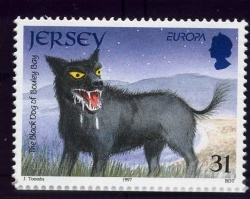 - ↑ Once the east of Jersey was ruled by armed French gangs, but they were hated by the islanders. One night there was a party at a farmer's house in Trinity, to celebrate the engagement of Raulin (the farmer's son) and Jeanne. Towards the end of the evening, a French gang arrived. There was an argument between Raulin and the leader of the gang, and as the Frenchmen left they warned Raulin that he would be punished in the morning. Later that night Raulin walked Jeanne home, and she was so worried that she begged him to stay. But he wouldn't, so she sent her dog with him to keep him safe.