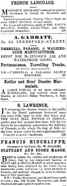 May I be allowed, Mr Editor, to name the worthy citizens to whom we owe the Albert Pier? The names of those who, when the people had no other friends in the States, came forward to defend their interests, are J W Dupre Esq, Attorney-General, and the worthy Magistrate Ph Le Gallais Esq. To them we ought to raise a useful monument on the harbours with their names and that of Peter Perrot Esq, enluminés en lettres d'or.